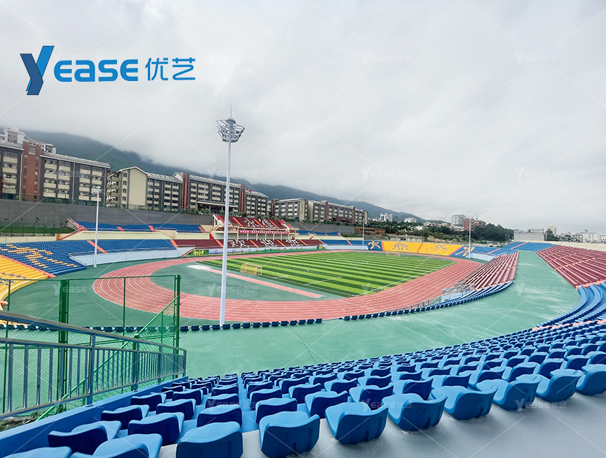 堅固耐用的鋼結構看臺系統(tǒng),滿足戶外場館長期使用與高承載要求。