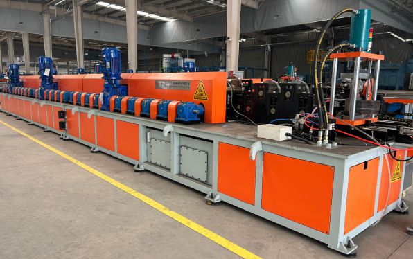 滾壓機(jī)設(shè)備外觀硬朗且極具工業(yè)質(zhì)感,由多組滾軸與動(dòng)力系統(tǒng)構(gòu)成。它優(yōu)勢(shì)盡顯,加工精度極高,滾軸精準(zhǔn)配合讓型材規(guī)整平滑,契合嚴(yán)苛工業(yè)標(biāo)準(zhǔn);生產(chǎn)效率出眾,連續(xù)穩(wěn)定作業(yè)大幅縮短生產(chǎn)周期;穩(wěn)定性強(qiáng)勁,長(zhǎng)時(shí)間運(yùn)轉(zhuǎn)性能依舊可靠;通用性良好,更換模具即可適配不同規(guī)格型材的滾壓需求,堪稱(chēng)型材精準(zhǔn)成型與高效量產(chǎn)的核心利器。